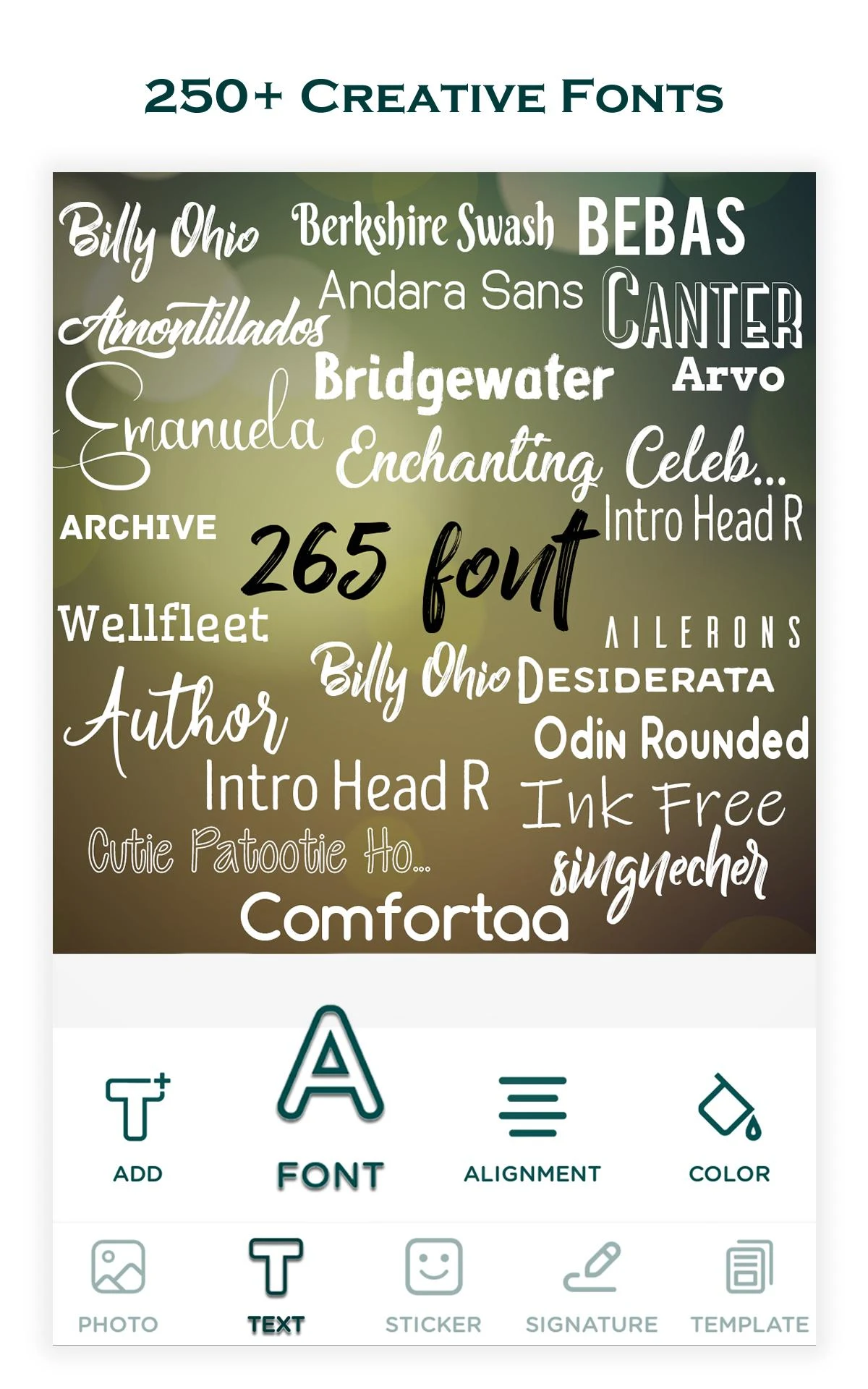 * Incorporate Text: Add stylish text to your images with over 250 fonts to choose from, creating personalized and professional content.