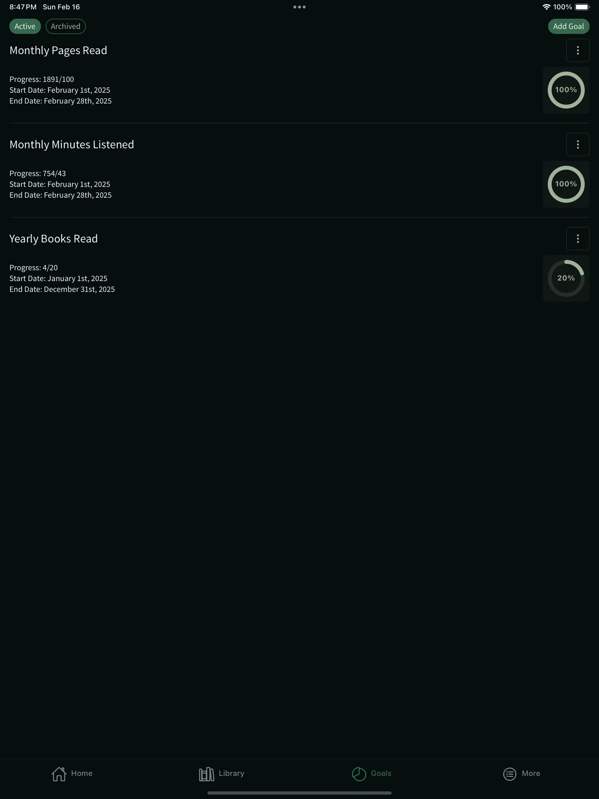> Set and track personalized reading goals for pages, minutes, books, or authors with the reading goal tracker.