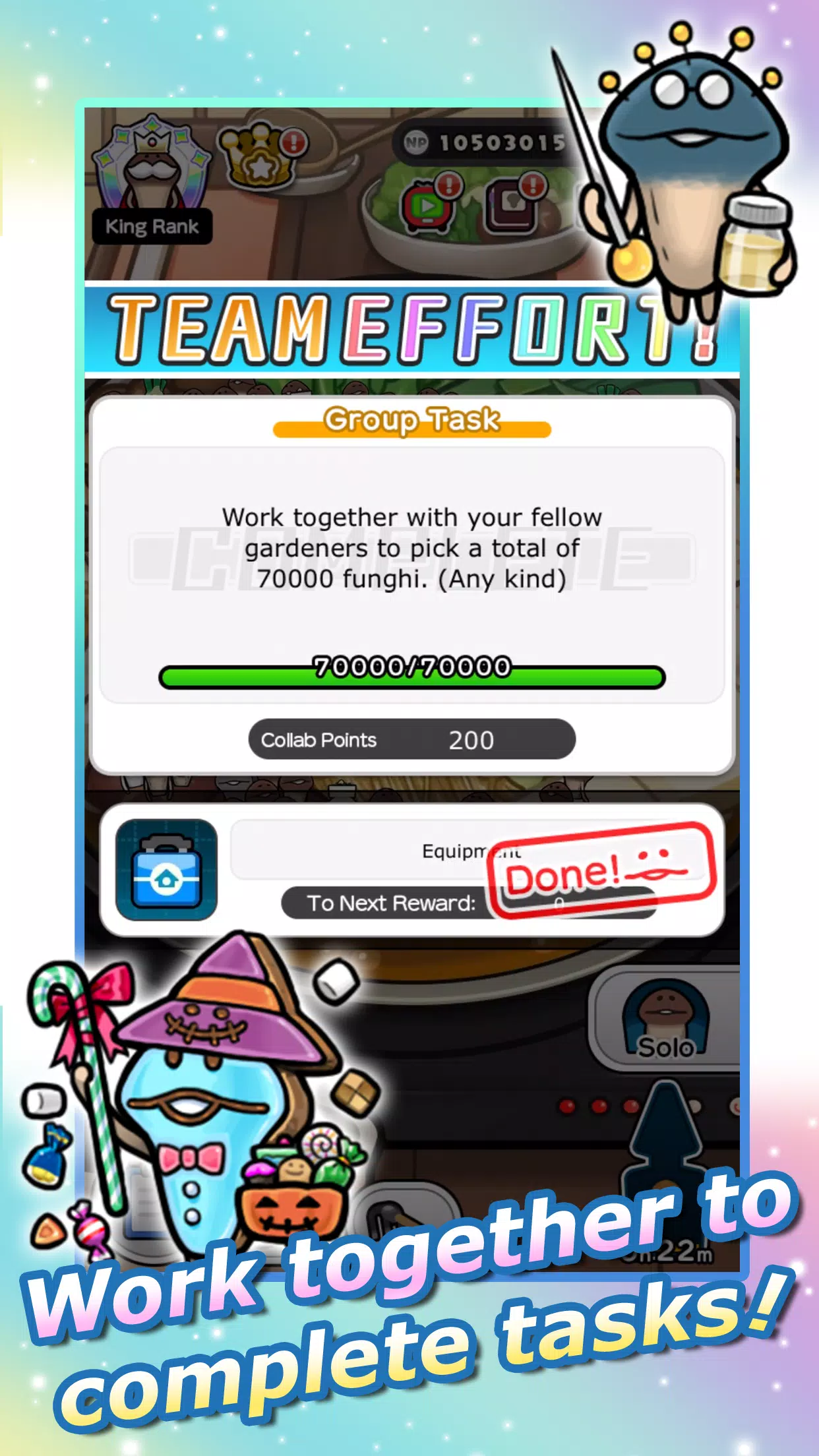 > Huge Harvests: Experience the satisfaction of harvesting an unprecedented number of funghi in Group Garden mode, with items that accelerate growth for a rewarding gameplay experience.